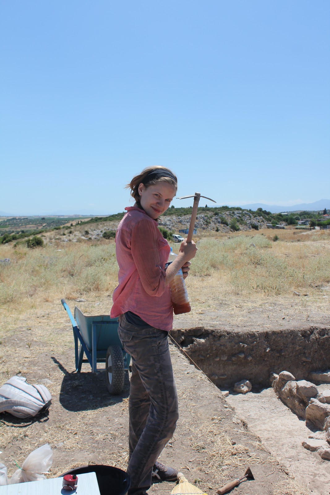 Ah, the handiest pick of the bunch. Here Morgan models this light-weight miniature pick-axe which provides the common archaeologist with a more controlled, precise swing. This little tool is not just known for its cute looks and sensible size! It can often be seen in smaller, more delicate areas and can be helpful in cleaning and defining features or taking down a course.