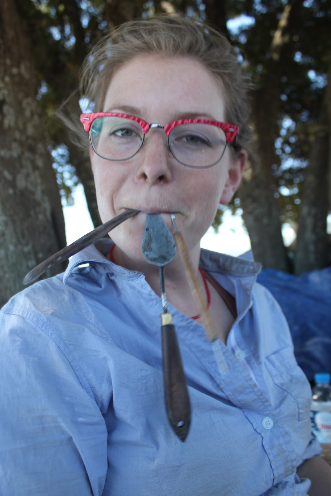 Gen is showing us (from left to right) Sticky Thingy, Tiny Trowel, and Pokey Thingy. And yes, those are the technical terms. These bad boys are used for the smaller work that the larger tools just can’t do. For example picking tiny clumps of dirt off various types of vessels, for a non-scratching removal process. These tiny tools can be an archaeologist’s best friends during an in-field “OH MY GOSH LOOK WHAT I FOUND” moment!