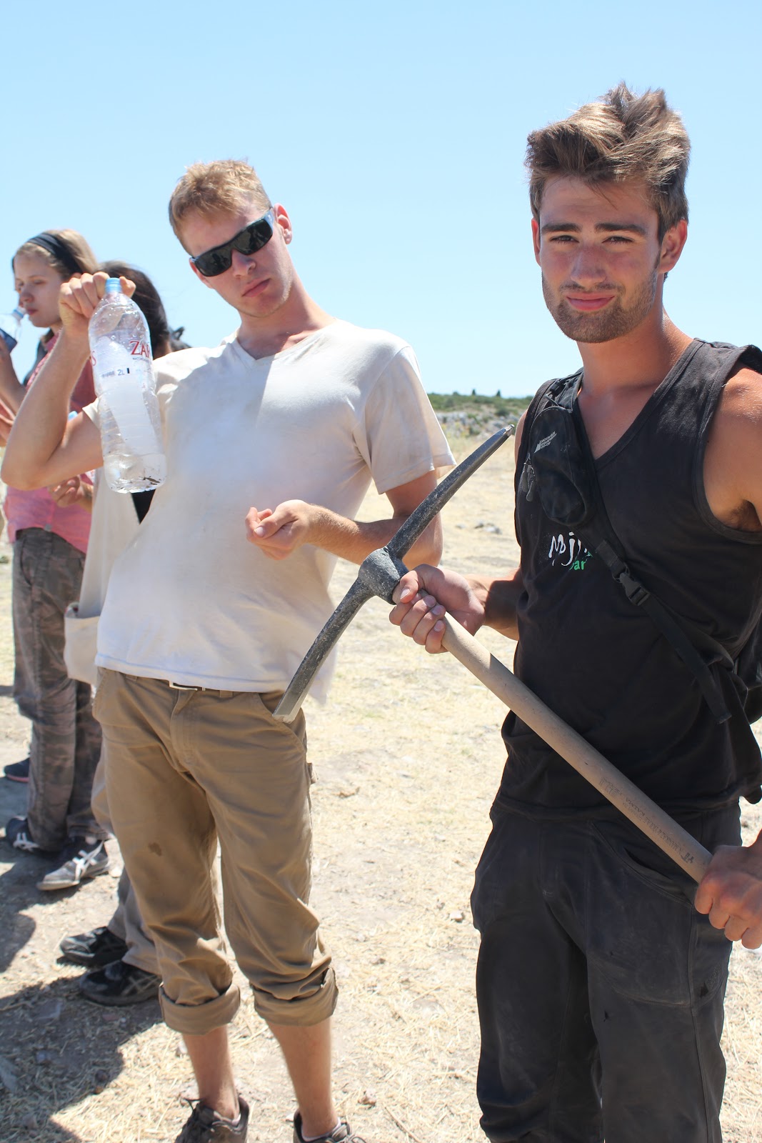 These professional male models are demonstrating two key aspects of archaeology: Hydration and one of the most important tools if you want to move a lot of dirt. The big-pick (aka ‘Kazma’) is a high demand item on the EBAP site and is one that can do a lot of damage to large areas of dirt. It’s Vangilis’s weapon of choice and if wielded correctly (which can take some practice) can be a highly profitable tool in terms of digging and also as new fun way to get out some anger issues.