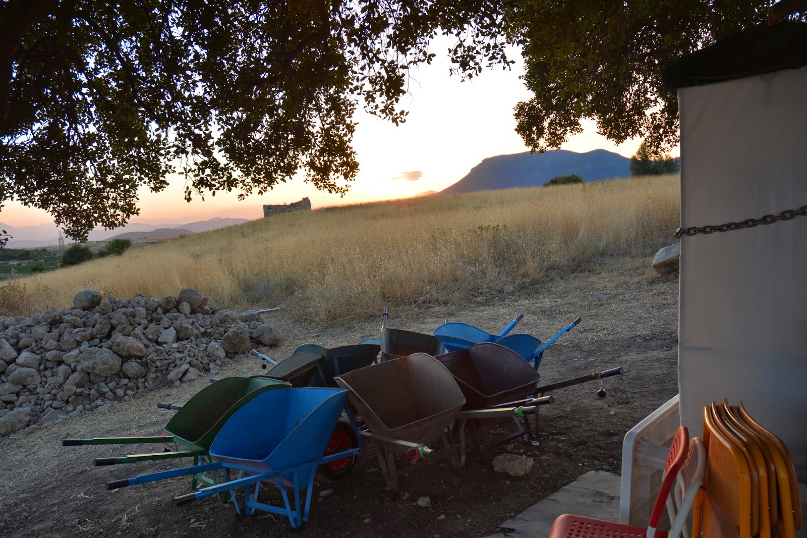 On Saturday we had a trench tour from Aiden Chimney, a visit from Oxford Professor Irene Lemos, Director of excavations at Lefkandi, and we had a late evening session to finish some important excavations. We also had a chance for a nice Arma sunset.