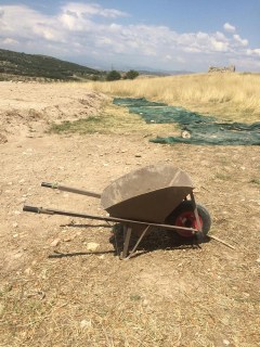 Sometimes it feels as though there is nothing that a trowel cannot do. During my first few days on site the trowel felt awkward in my hand and I wasn’t quite sure of its full purpose. Now after 5 weeks on site it fits naturally in my hand, almost like an extension of my arm. A trowel to an archaeologist is like a scalpel to a surgeon. Since arriving on site not a day has gone by that I have not required my trowel. It can be used for a variety of things on site ranging from scraping a bulk to examining soil changes on a surface, or simply collecting dirt into a dustpan. It’s most important use in my experience is for checking for changes in soil on a surface. For example if you are working on a surface using picks and shovels you may not notice a change in soil density that clearly. If one area is denser or more clay like then another, a quick scrape on the surface with the edge of your trowel will help to clarify any changes.
