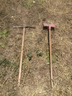 Required for more detailed work such as articulating large rocks or cleaning a bulk at the end of the day. A pick does less damage then most other tools because when breaking into the earth there is only on small point of contact rather than with a shovel where more extensive damage can be done due to its width.
