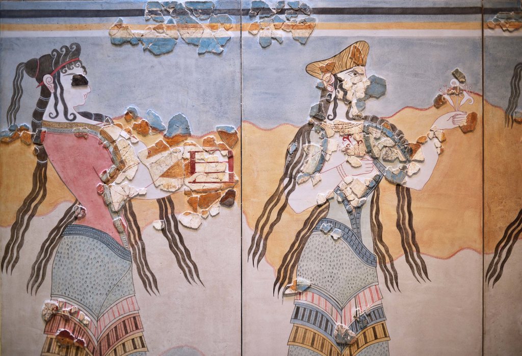 The majority of known frescoes come from palatial contexts, where iconographical similarities between centers can be seen in hunting scenes at Mycenae, Tiryns, Orchomenos, and Pylos, and in the religious procession scenes at Knossos, Thebes (Figure 1), Pylos, and Tiryns. Many frescoes have been suggested to be religious in nature, perhaps depicting the actions that were expected of palatial visitors during religious festivals and ceremonies. Other pieces, particularly in the Cyclades, depict ornate natural scenes with a variety of identifiable plants and animals.