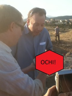 Mr. Vangelis has been with us since the first shovel of newly picked dirt this season (approx. 4 weeks ago) and we have all become very fond of our fatherly Greek, Nescafe- loving workman. I was with him for the first two weeks in the original wall trench where I learned how to pick and shovel and “rest for four minutes” on the especially hot days. This led to a few Greek lessons, a suspicion that Mr. V understands more English then he lets on, and some lasting words of wisdom.