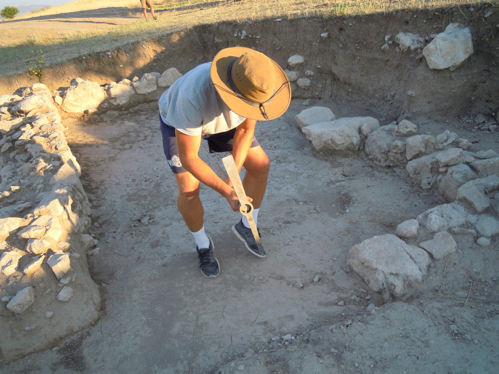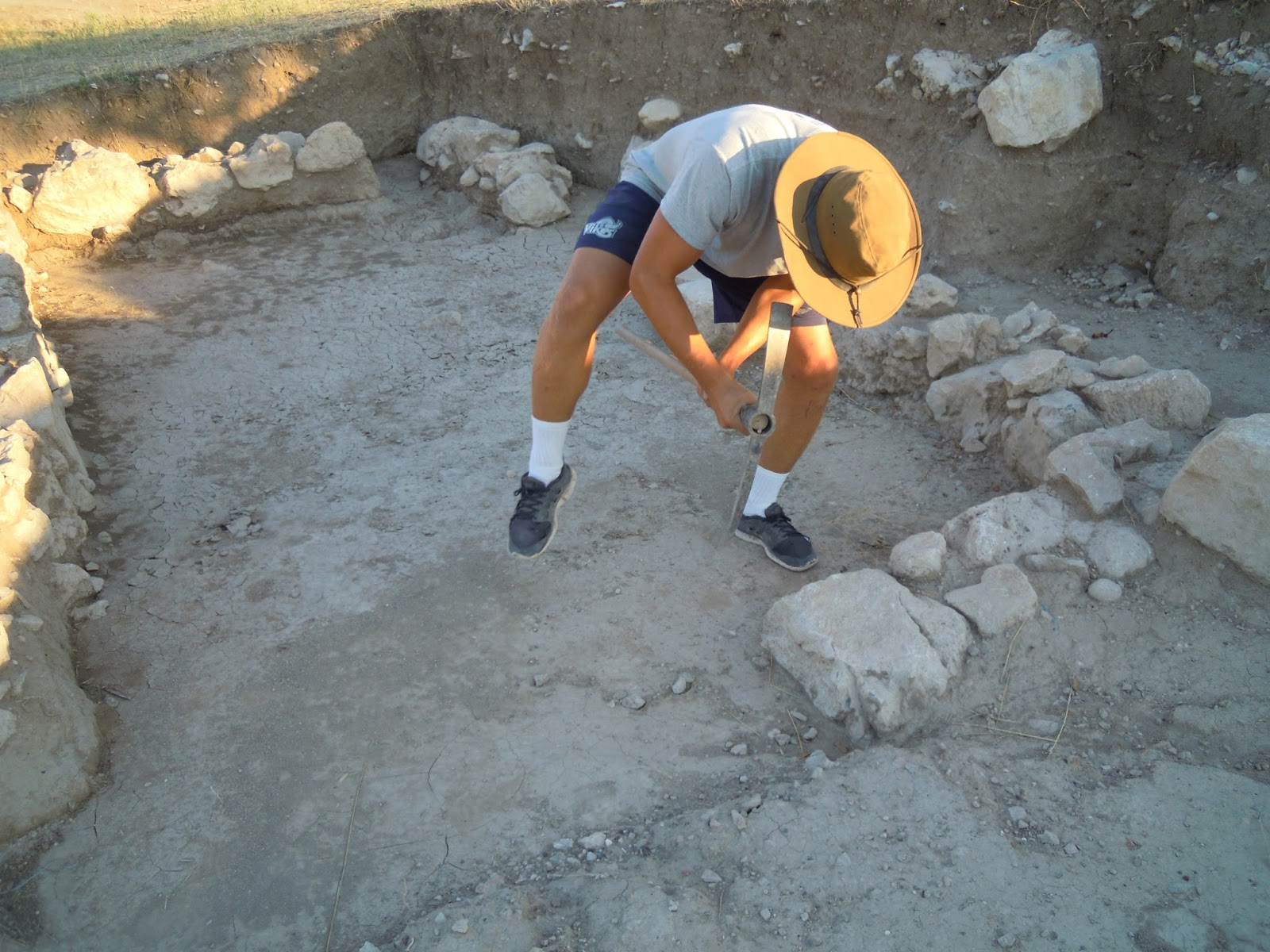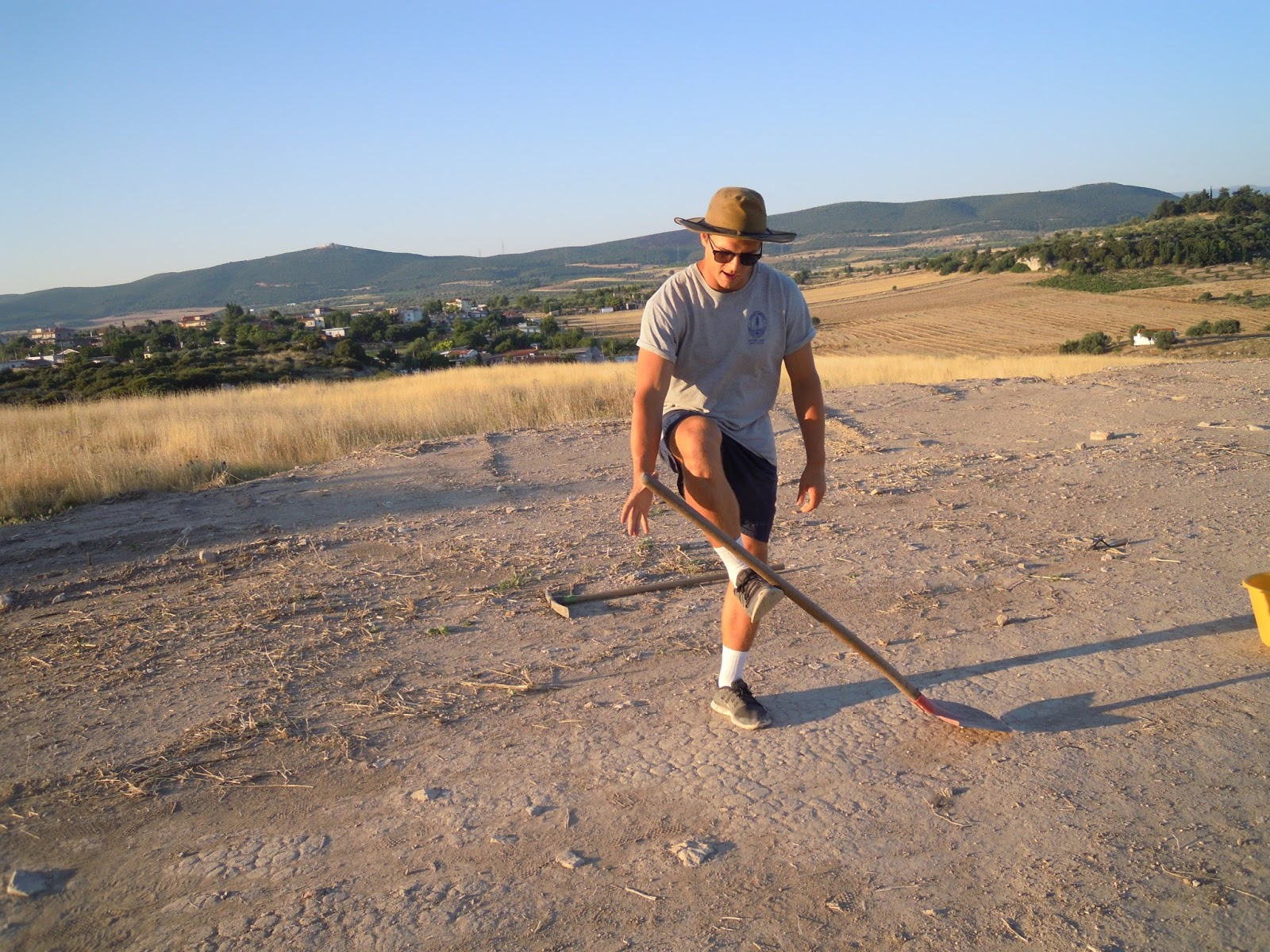 Sometimes it feels as though there is nothing that a trowel cannot do. During my first few days on site the trowel felt awkward in my hand and I wasn’t quite sure of its full purpose. Now after 5 weeks on site it fits naturally in my hand, almost like an extension of my arm. A trowel to an archaeologist is like a scalpel to a surgeon. Since arriving on site not a day has gone by that I have not required my trowel. It can be used for a variety of things on site ranging from scraping a bulk to examining soil changes on a surface, or simply collecting dirt into a dustpan. It’s most important use in my experience is for checking for changes in soil on a surface. For example if you are working on a surface using picks and shovels you may not notice a change in soil density that clearly. If one area is denser or more clay like then another, a quick scrape on the surface with the edge of your trowel will help to clarify any changes.